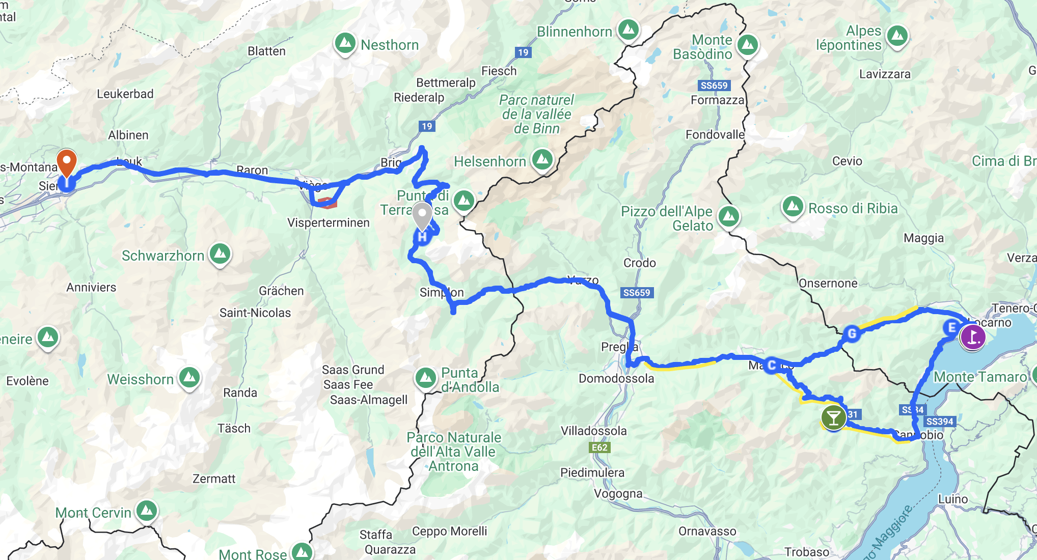 Plus d’informations sur le parcours : https://www.google.com/maps/d/u/0/viewer?mid=150GStZwAwtk5ryhdPCdT6LOLNmbMesw&ll=46.1923309825724%2C8.162090000000006&z=10